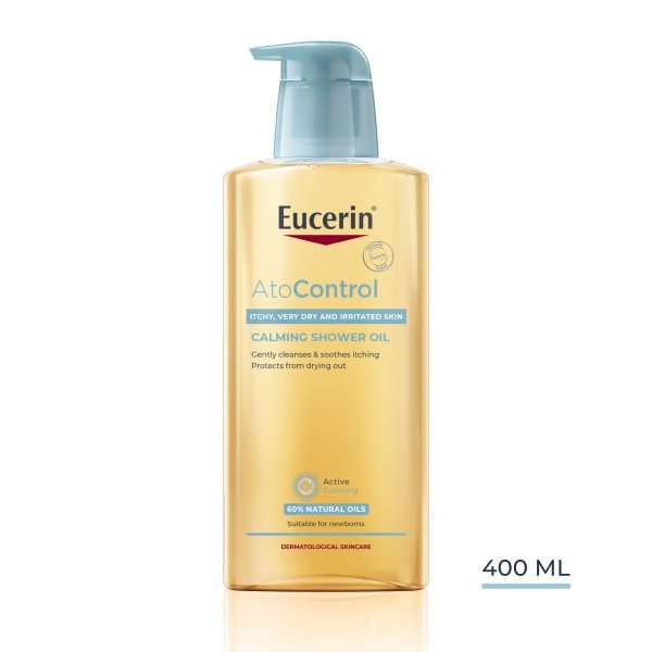 Eucerin AtoControl Bath and Shower Oil is soap-free and enriched with a high concentration of Omega-3 and Omega-6 Oils to gently cleanse and soothe skin with Atopic Dermatitis. The body wash for Atopic Dermatitis relieves itching and supports skin’s natural barrier. Even with regular washing, skin is protected from further dryness and itching.