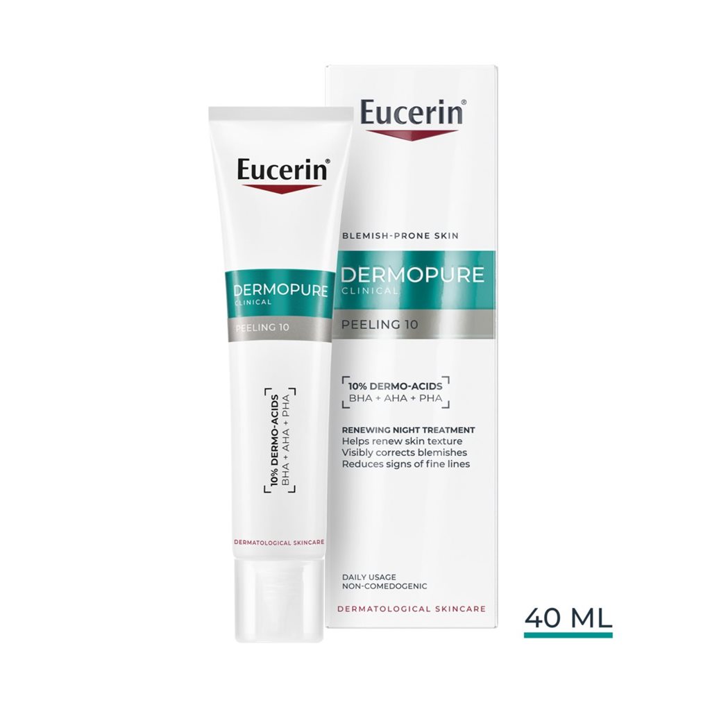 Eucerin DERMOPURE CLINICAL Peeling 10 is recommended by dermatologists and clinically proven to renew the skin texture overnight as well as correct post-acne marks and target fine lines.