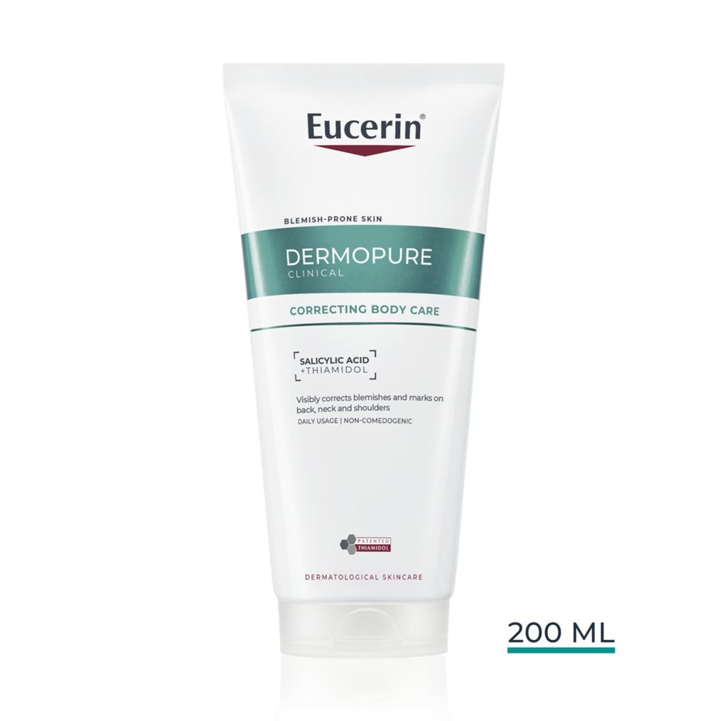 Specifically designed for blemish-prone skin, this lightweight body lotion improves blemishes and marks within two weeks with a powerful combination of Salicylic Acid and patented Thiamidol. Clinically and dermatologically proven, the Eucerin DERMOPURE CLINICAL Correcting Body Care is ideal for oily, blemish-prone skin and suitable for sensitive skin.