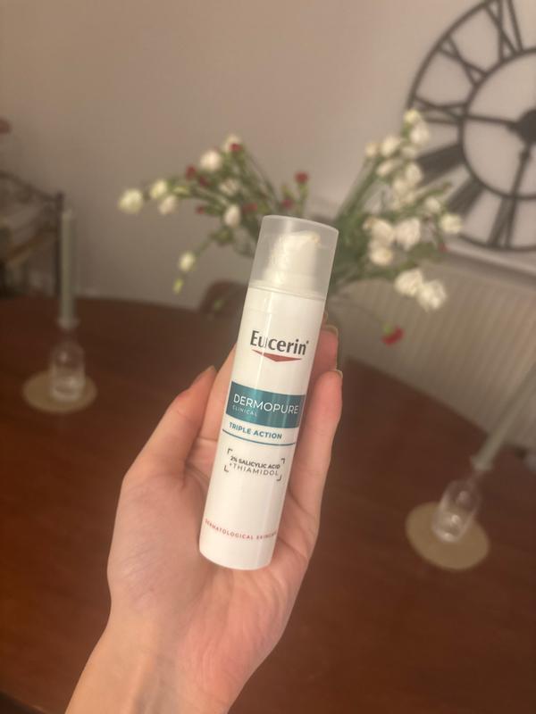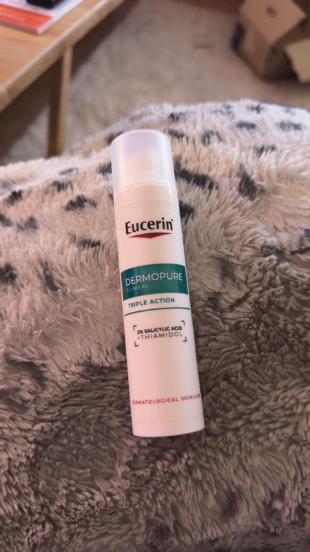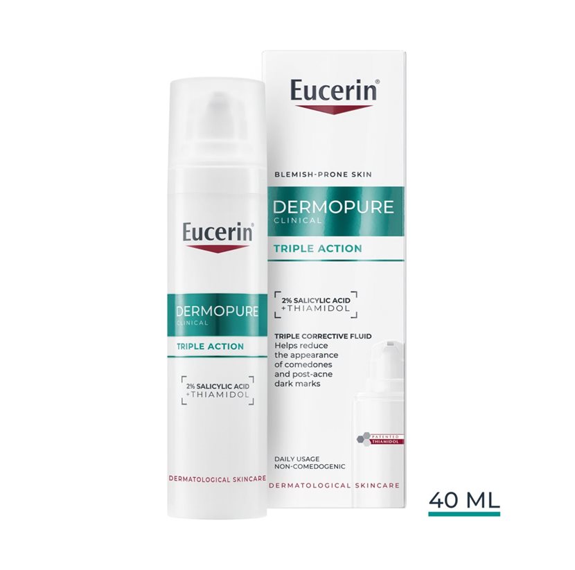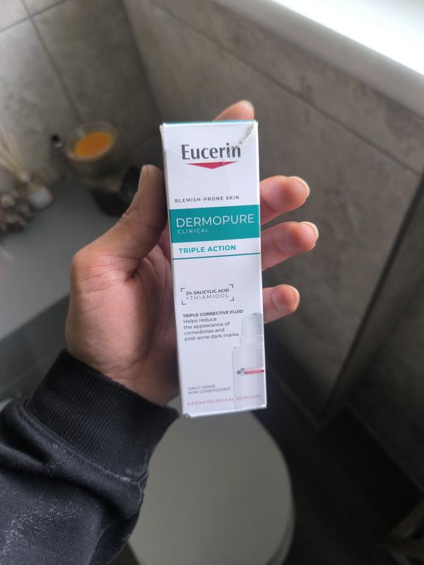 Eucerin DERMOPURE CLINICAL Triple Action Corrective Fluid is a powerful facial fluid recommended by dermatologists and clinically proven to address the three main types of imperfections: