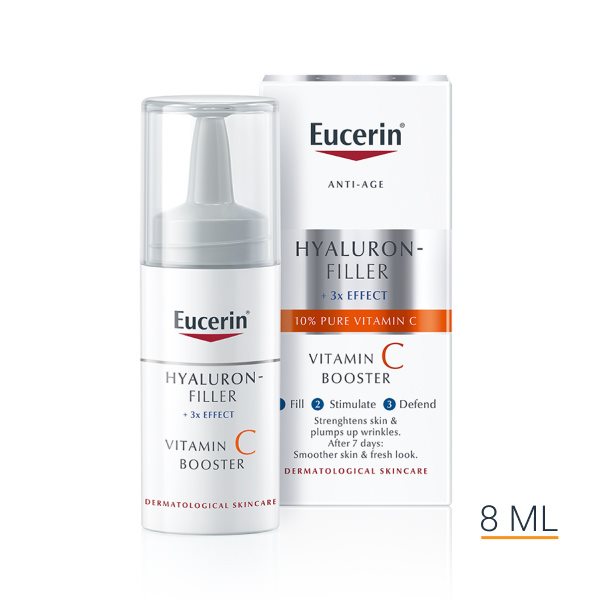 Vitamin C is known to be a powerful anti-oxidant and is key to the synthesis of collagen in skin cells. There are four main factors that make Eucerin’s Hyaluron-Filler Vitamin C Booster so effective: