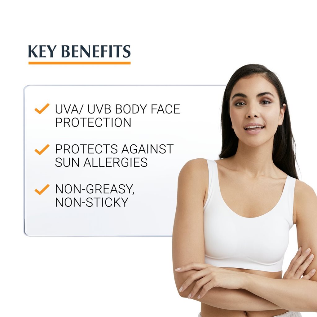 Like sensitive skin, allergy-prone skin has a weakened protective barrier making it more vulnerable to external irritants. One of those external irritants is the sun. Certain chemicals − such as perfume − can also trigger a reaction in sensitive, allergy-prone skin. Eucerin Sun Allergy Protect Sun Crème Gel SPF50 gives skin prone to sun allergies the high level of sun protection it needs. It also contains antioxidants that soothe skin and strengthen skin´s own protection system against UVA-induced free radicals, thereby helping to prevent the formation of sun allergies.